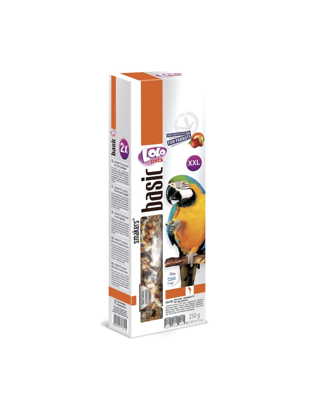Presentadas en un paquete de 250 gramos, estas barritas son prácticas y fáciles de colocar en la jaula, ideales para ofrecer un suplemento diario equilibrado y sabroso.