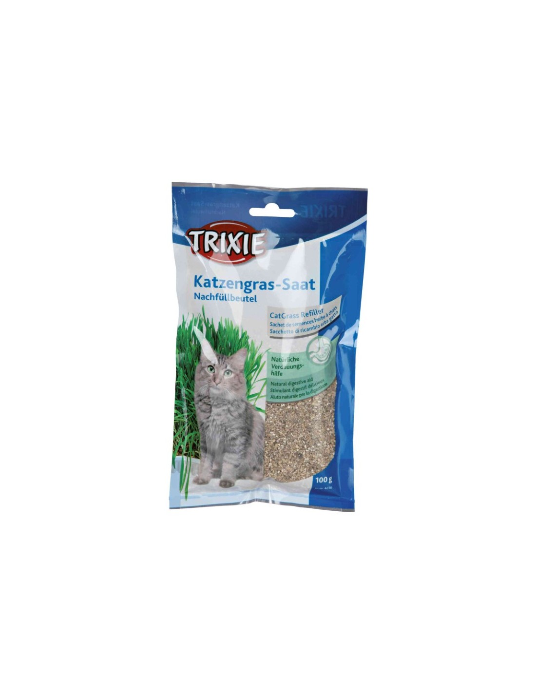 Paquete de 100g: Cantidad conveniente para asegurarte de que siempre tengas hierba fresca disponible para tu gato.