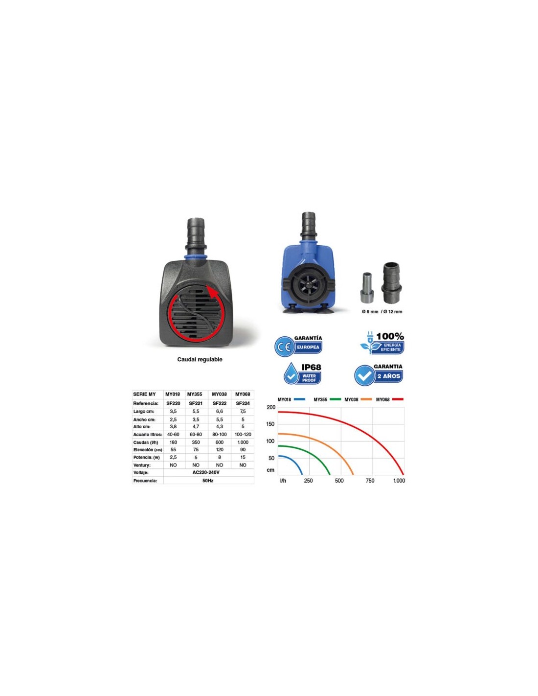 Capacidad de bombeo: Ideal para acuarios de hasta 180 litros.