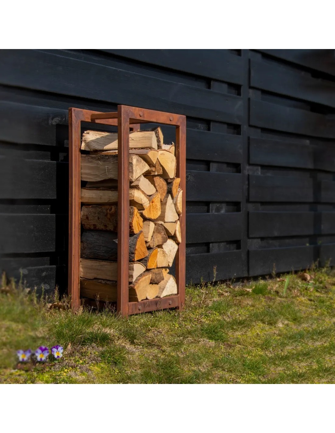 Compacto y resistente, este leñero permite mantener la leña organizada y seca de manera eficiente, optimizando el espacio disponible.