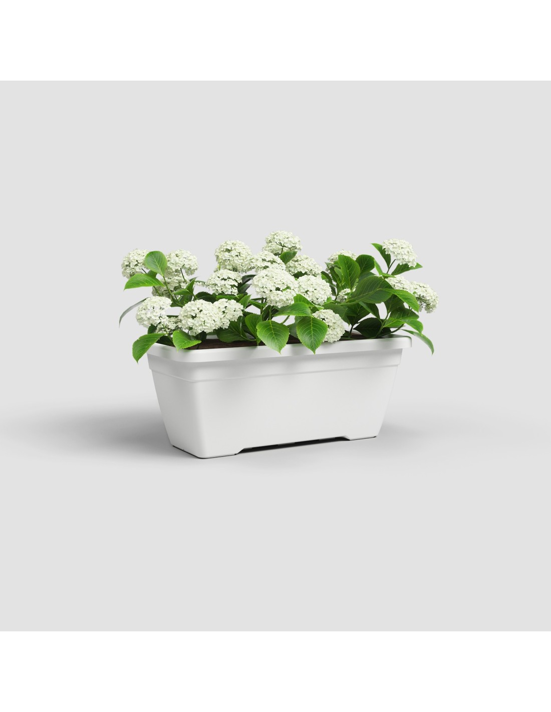 Jardinera blanca de 80 cm, ideal para plantas medianas y grandes, con buen drenaje y fácil mantenimiento, perfecta para interiores y exteriores.