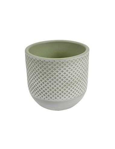 Macetero decorativo de diseño natural en color eucalipto, ideal para interior.