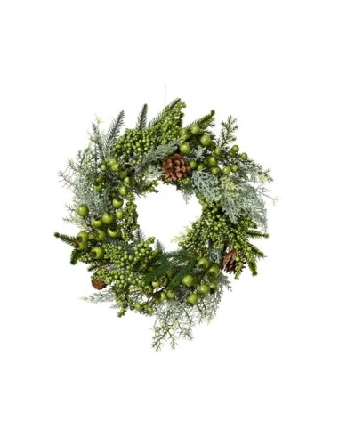 CORONA DE BAYAS VERDES Y PIÑAS D40CH12CM VERDE
