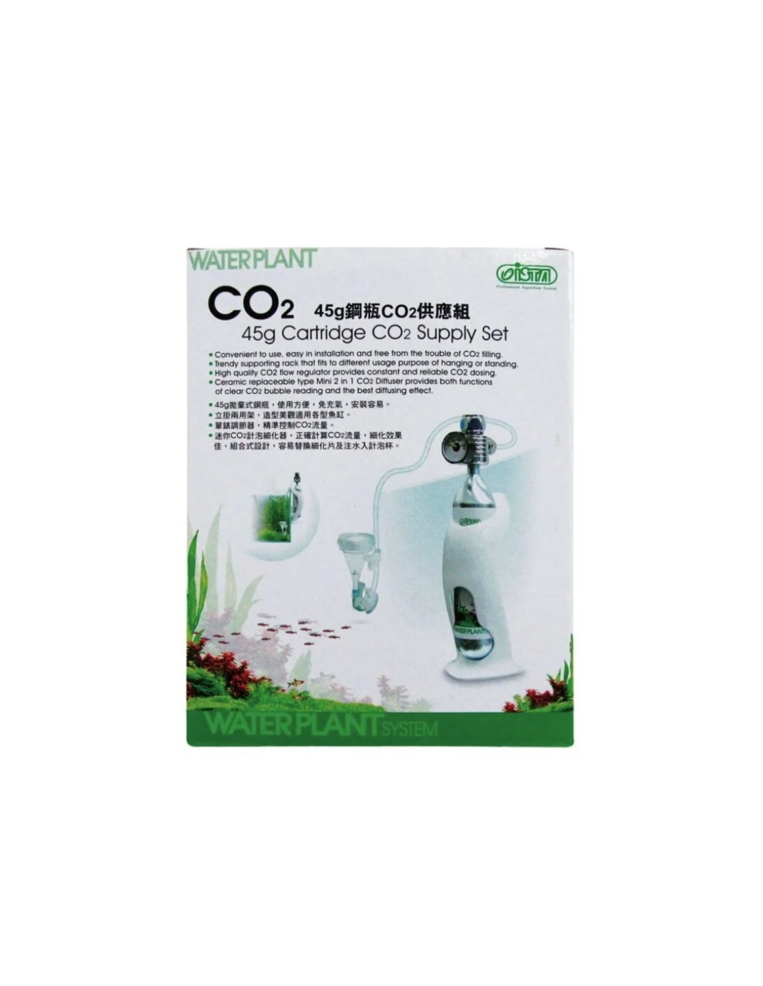 Capacidad: Cilindro de CO2 de 45 gramos, suficiente para mantener el equilibrio del CO2 en acuarios de tamaño medio.